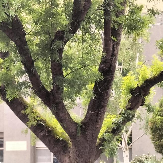 My front window reaches from ceiling to a half metre from the floor. The road beyond my mini garden is narrow and quiet; on the opposite side there is an ancient towering Chinese Elm. Its dark triple-trunk and spreading branches are there in front of me whenever I look to the light. At night the elm disappears into the blackness.
