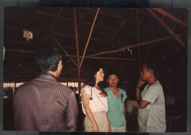 There was a bamboo and thatch hospital; it was responsive to dire emergencies including immediate care for patients carried in bleeding from landmine injuries. As well there was a Tuberculosis Clinic initially set up by Bob Maat. During a decade or so while the camp was under constant shelling, Bob taught a team of Cambodian refugees to care for patients infected with TB. These refugee medics understood the disease and ensured that patients took their medication on time and consistently. Almost all were cured. Even if the area became an active battle zone there were strategies for Daily Observed Therapy. Sok Thim, refugee and medic, learned to be a leader in this program; Bob moved on to other tasks. By the time the border camps closed, 10,000 patients had been treated in refugee camps along the border. Most lives were saved.